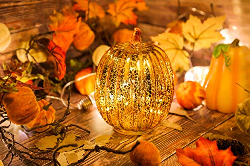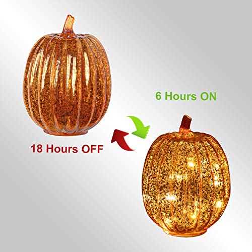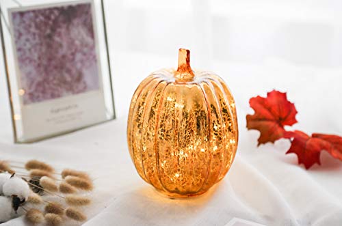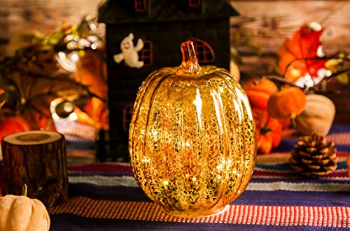 Specification: simpdecor Halloween Kürbis Licht LED Beleuchtete mit Timer Kürbisse Glas Herbst und Home Decor, Gold, 7,5 Zoll